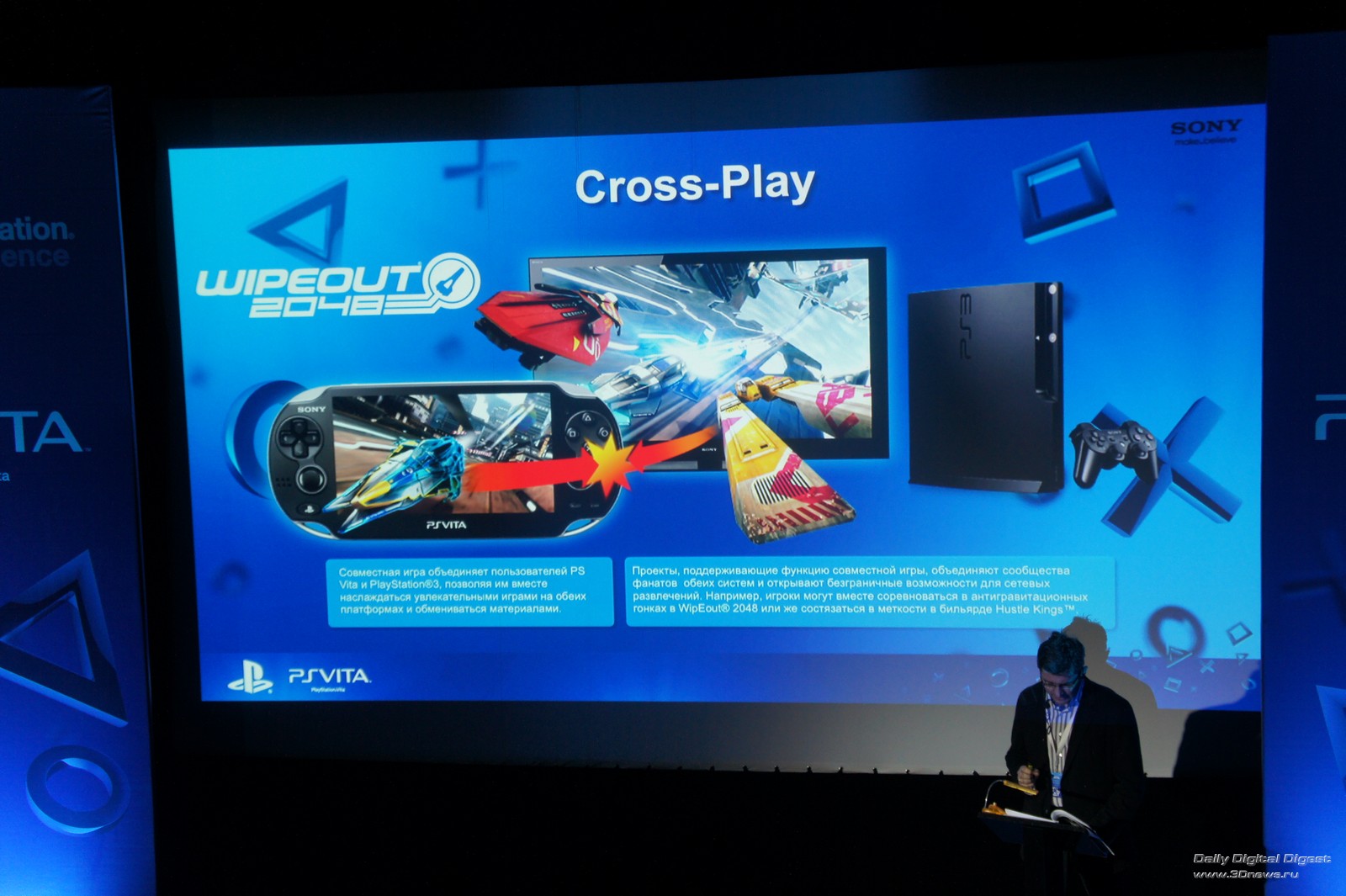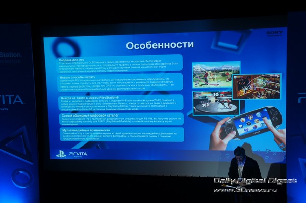 Со времени выпуска первой версии PSP ситуация на рынке мобильных развлечений значительно изменилась, причем не в пользу японских гигантов Sony и Nintendo. Кому сейчас нужны дорогие консоли вроде PS Vita и 3DS с их заоблачными ценами на игры, когда есть ворох планшетов, Android-смартфонов, а также iOS-устройств Apple? Достойная технологическая база позволяет этим аппаратам без проблем исполнять роль портативной консоли. Добавьте сюда разнообразие игровых приложений из Android Market и App Store, продающихся за пару долларов, и получите не слишком радостную для специализированных игровых консолей картину. Возможно, именно поэтому результаты первоначальных продаж Vita оказались не такими радужными, как ожидалось, да и с каждой неделей спрос лишь продолжал падать. Sony рассчитывает, что ситуация должна выровняться после массового запуска консоли, запланированного на 22 февраля. Во всемирную «массовку» вошла и Россия. Дабы подогреть интерес к событию, 15 февраля Sony организовала в Москве официальную презентацию PS Vita. Однако, перед тем как мы поделимся личными впечатлениями об устройстве, давайте взглянем на него со стороны технических характеристик и пройдемся по наиболее интересным моментам. Кликните на изображение для увеличения Для тех, кто еще не знает: Vita является полноценной следующей главой в истории портативных систем Sony, а не обновлением в духе PSP go. Отсюда и соответствующие спецификации: Кликните на изображение для увеличения Остановимся на основных особенностях Vita подробнее. Сразу стоит отметить, что с Vita Sony отказалась от распространения игр на UMD-носителях. Можно было бы начинать праздновать, однако один экзотический специализированный формат сменился другим, а именно: картами памяти Vita Memory Card. Каких-либо заслуживающих внимания аргументов в пользу такого решения у разработчиков нет, а вот претензий со стороны потенциальных владельцев — хоть отбавляй. Главной среди них является цена на карточку, которая в зависимости от объема носителя варьируется от $29 до $119. Кликните на изображение для увеличения Зато с несъемной батареей все очень даже неплохо. По официальным данным Sony, она способна питать консоль до пяти часов в игровом режиме и более девяти — в режиме прослушивания музыки. Конечно, это гораздо меньше, чем у PSP, но все равно лучше, чем у 3DS. И совсем хорошо, если вспомнить о наличии четырехъядерного процессора, мощной видеокарты и 5-дюймового сенсорного экрана. Организовав собственный тест в реальных условиях, портал IGN отчасти смог подтвердить заявленные производителем показатели. А вот Remote Play — это уже «фишка» поинтересней выносливой батареи. По сути, она позволяет играть на Vita в PS3-игры, которые ваша «тройка» обрабатывает и в реальном времени посылает на портативную консоль. Все неувязки с разницей в конструкции геймпада Dual Shock и органов управления PS Vita устраняются возложением недостающих функций на сенсорный экран. «Мускулы» Vita просматриваются уже в характеристиках, однако простое перечисление компонентов консоли не дает представления о том, как устроено управление в играх — пожалуй, именно это является одной из ключевых особенностей устройства. Традиционная крестовина, кнопки, аналоговые стики и «бамперы» (шифты) остались на месте, однако к ним прибавился большой мультисенсорный экран и тачпад на задней панели. Более того, в играх испо